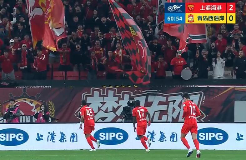 最终,上海海港主场4-1大胜青岛西海岸,取得赛季中超首胜。
